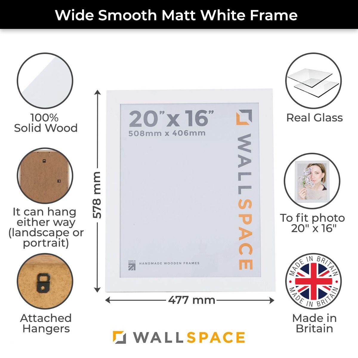 Hand crafted from solid wood with a sleek matt white finish that will compliment your chosen picture, for a timeless look that will look excellent in homes of all styles.
