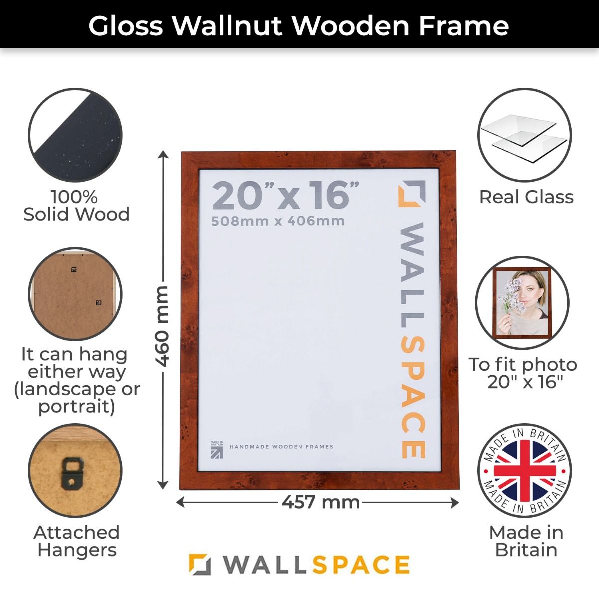 20 x 16 Gloss Walnut Photo Frames