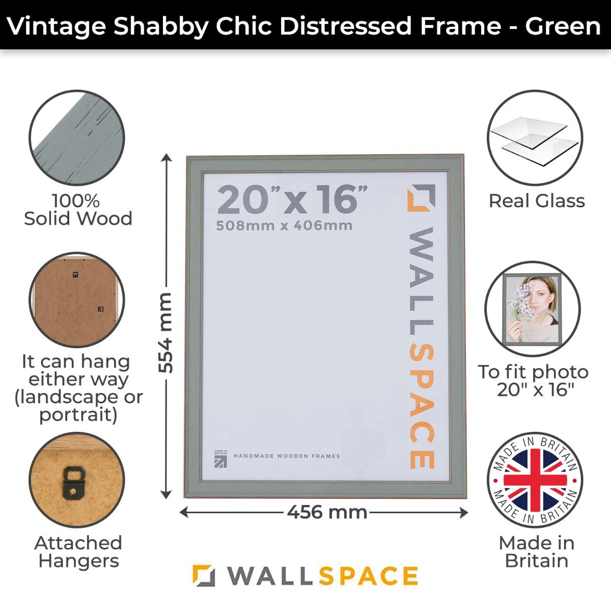 Hand crafted from solid wood with a shabby chic green finish that will compliment your chosen picture, for a timeless look that will look excellent in homes of all styles.