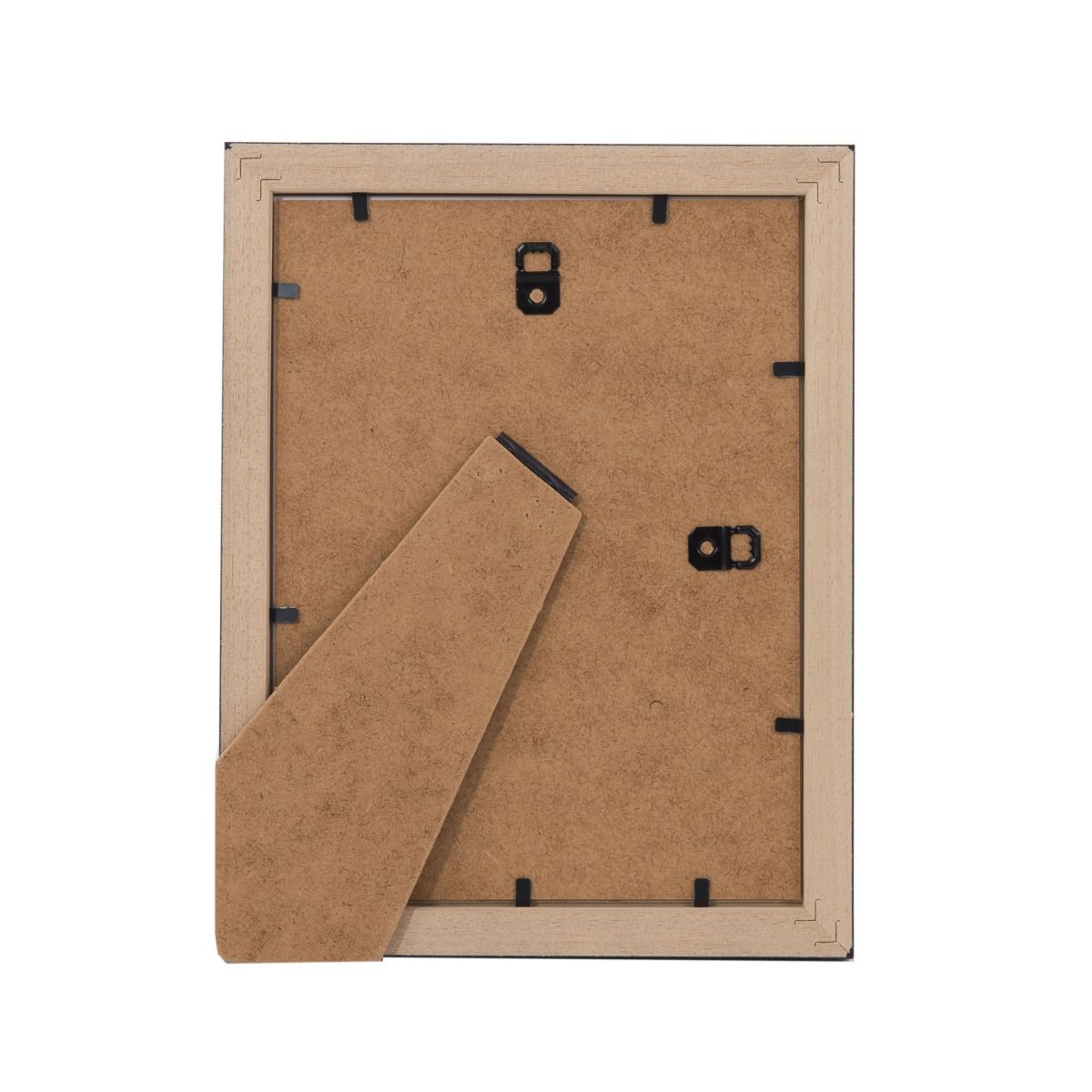 Comes complete with hanging fixings and a standing back attached, allowing it to hang or stand either portrait or landscape.