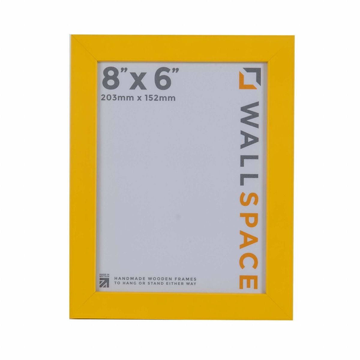 If you are looking for a 8" x 6" sized frame, then you can't do much better than this one. Lovingly made by ourselves this 8x6 bright yellow wooden photo frame will look great on your wall or standing on a mantlepiece or sideboard.