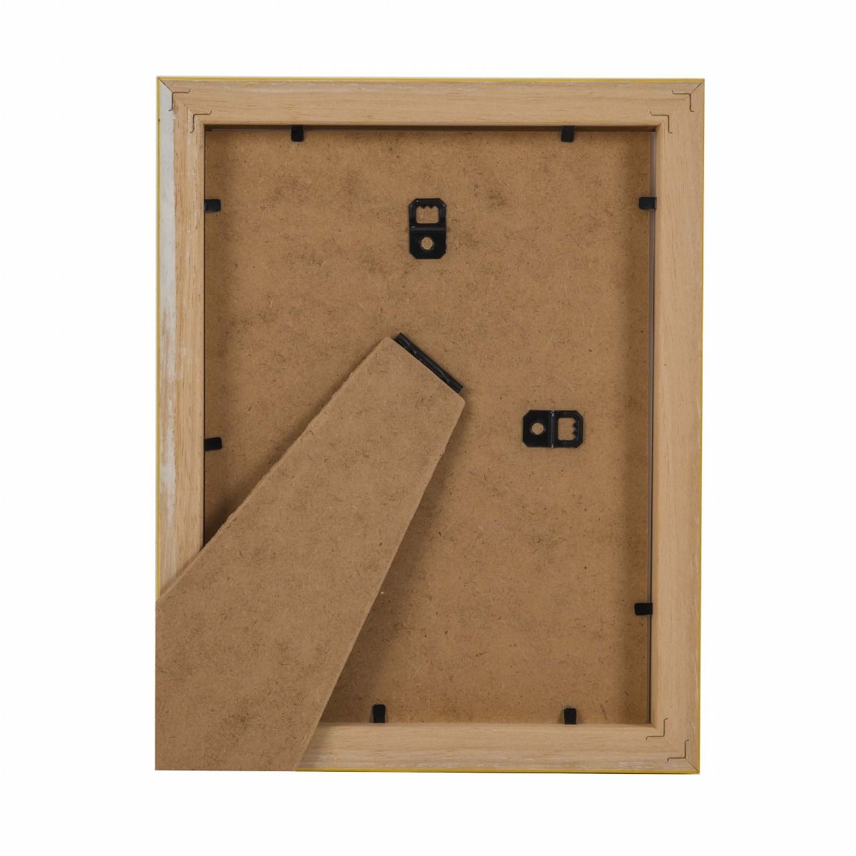 Comes complete with hanging fixings and a standing back attached, allowing it to hang or stand either portrait or landscape.